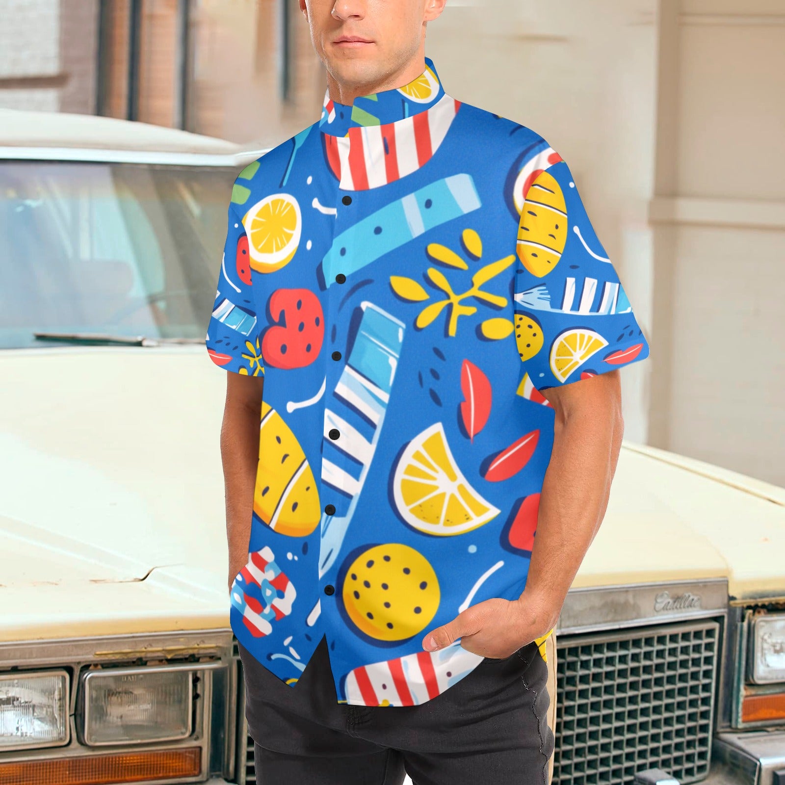 Prepárate para ser la limonada humana más fresca del verano 🍋 con la camisa “Vitaminada”. Su diseño divertido de frutas, colores vivos y formas abstractas convierte cualquier día en vacaciones.