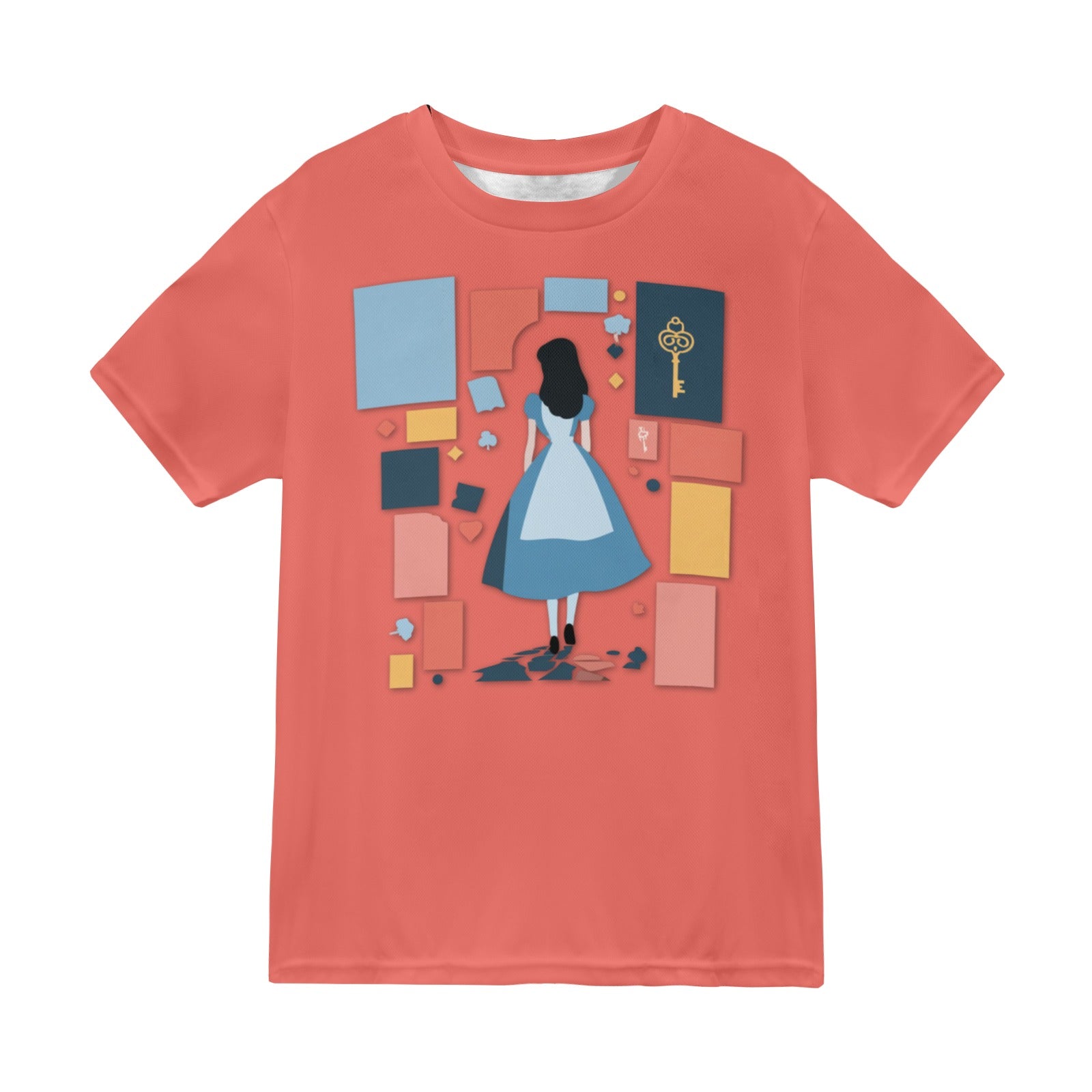 Dulce y fantástica, la camiseta rosa de Alicia en el País de las Maravillas es ideal para quienes aman lo mágico y lo soñador.