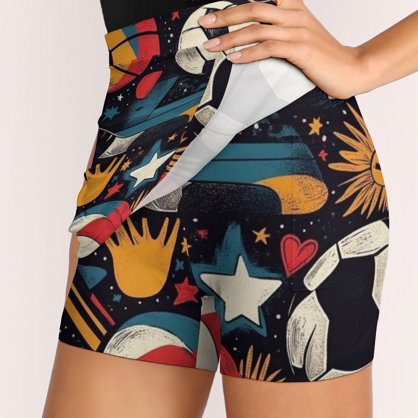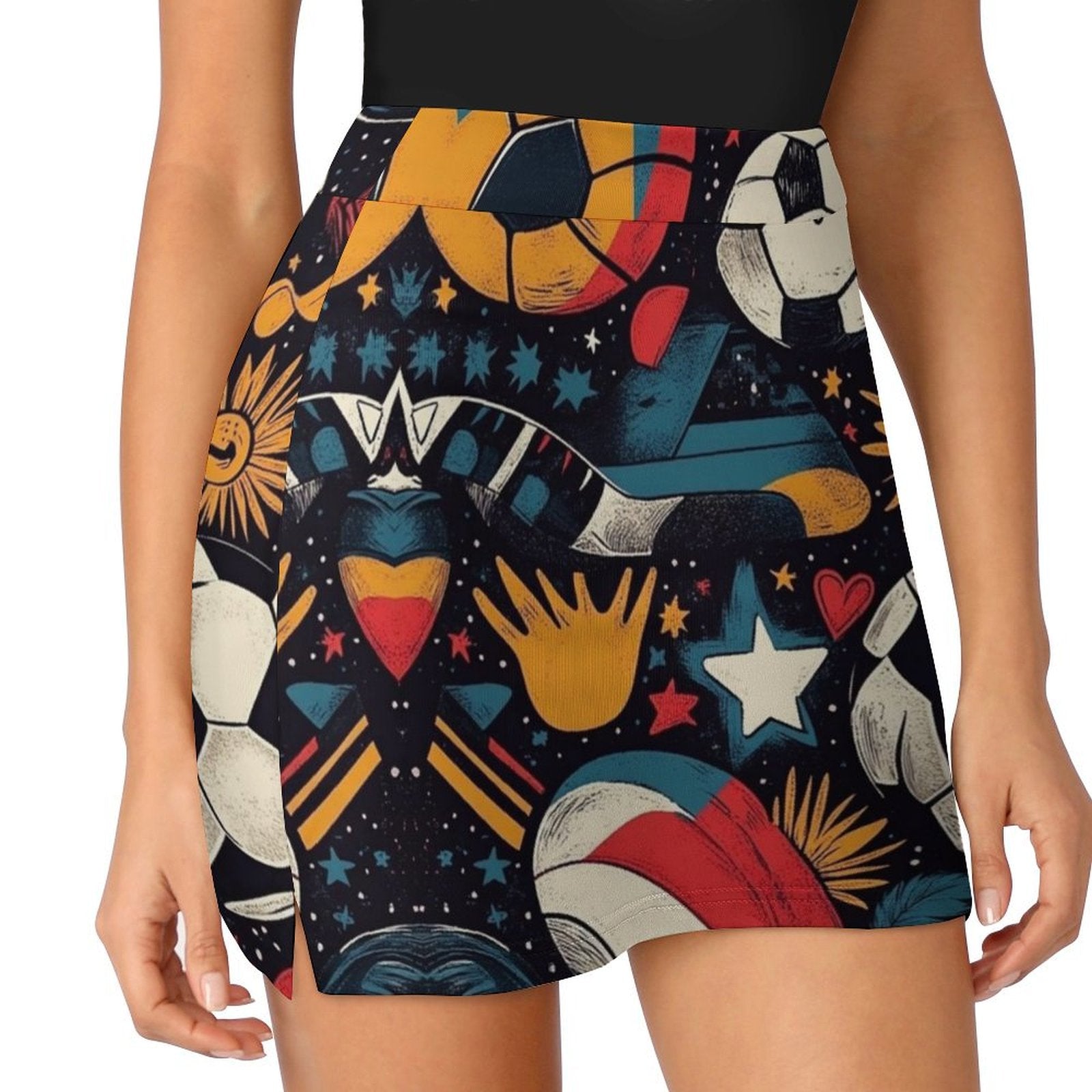 Lleva tu pasión por el fútbol con una falda pantalón segura y cómoda. ⚽🖤 Corte A con shorts debajo. Diseño evasé con patrones de fútbol y corazones rojos en atmósfera oscura. ¡La combinación perfecta de deporte, estilo y seguridad!