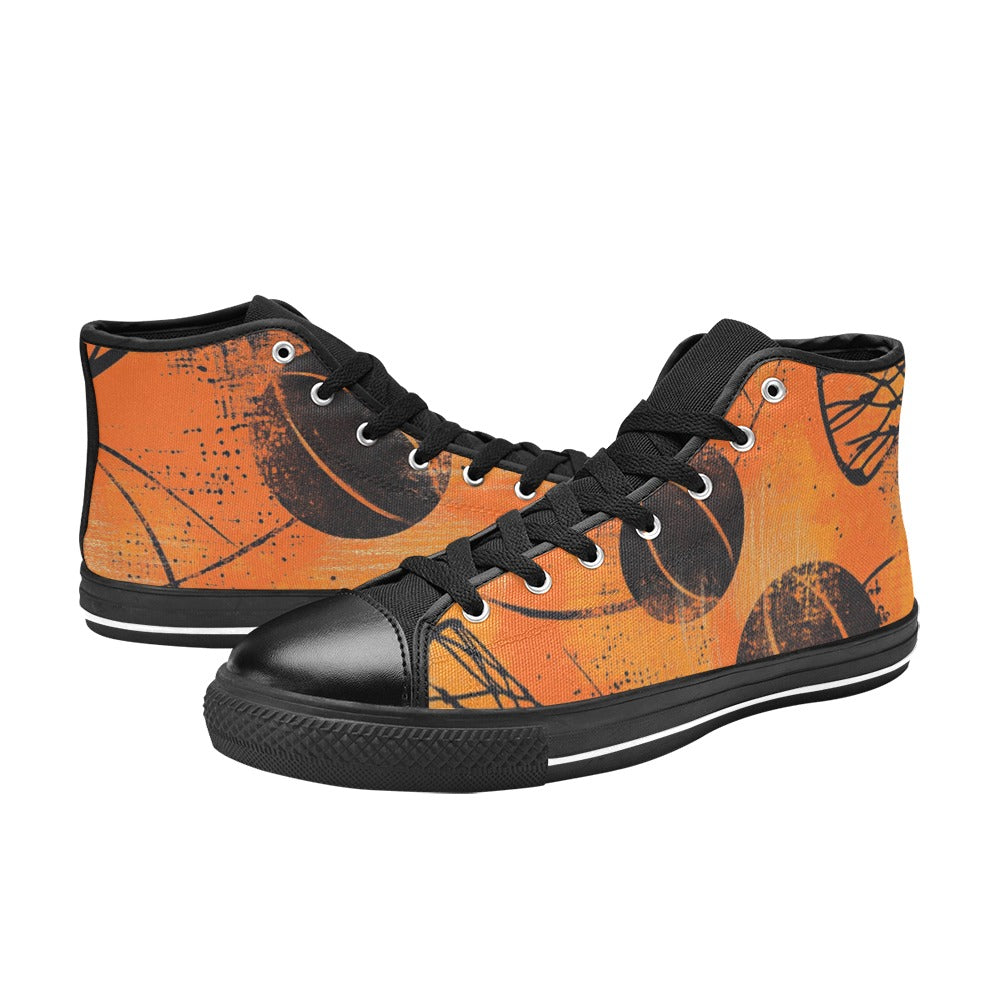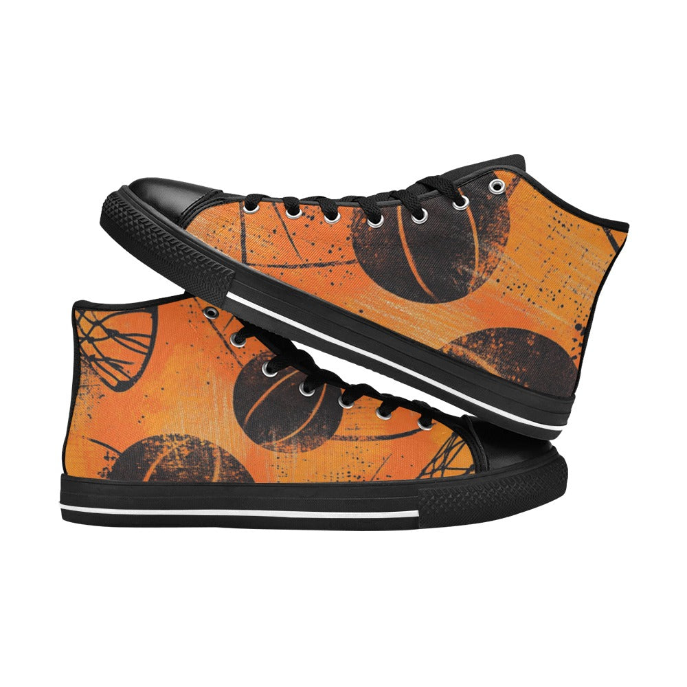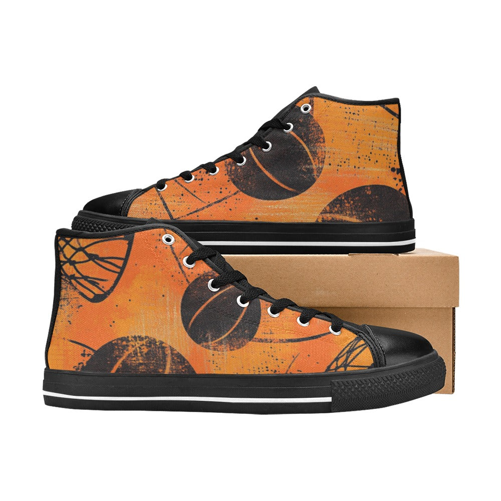 Zapatillas de lona a la moda, con estilo deportivo y personalización en los 4 lados. 🏀👟 Con patrones referentes al baloncesto. Suela de goma, tobillo alto con cordones. ¡Lleva el deporte contigo con un diseño único!