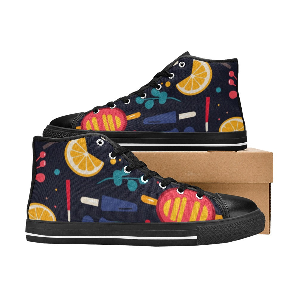 El calzado perfecto para la temporada de calor. 🍋🍉 Con dibujos veraniegos (polos, cítricos) y fondo azul marino. Suela de goma de alta calidad y forro interior suave. ¡Frescura y comodidad en cada paso!