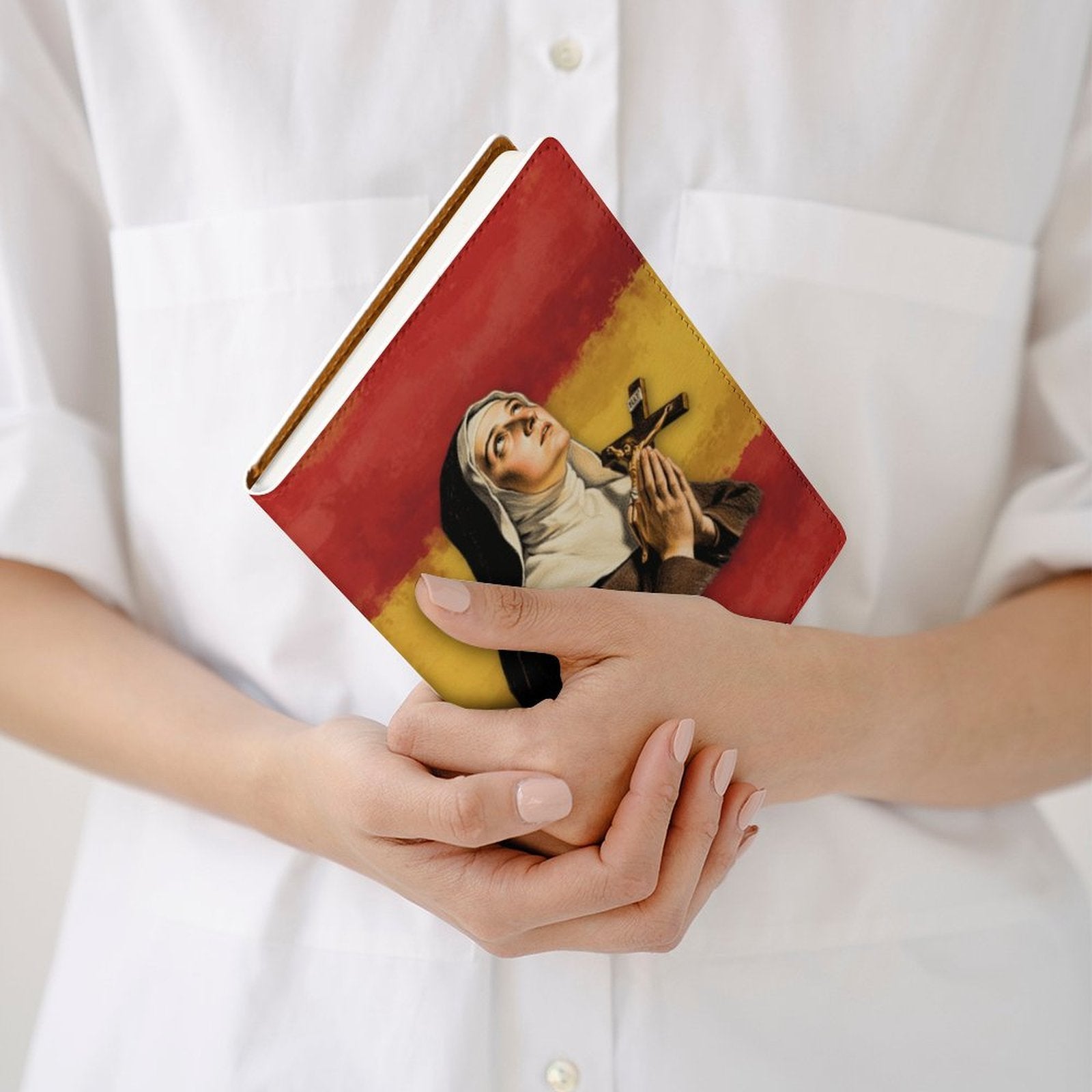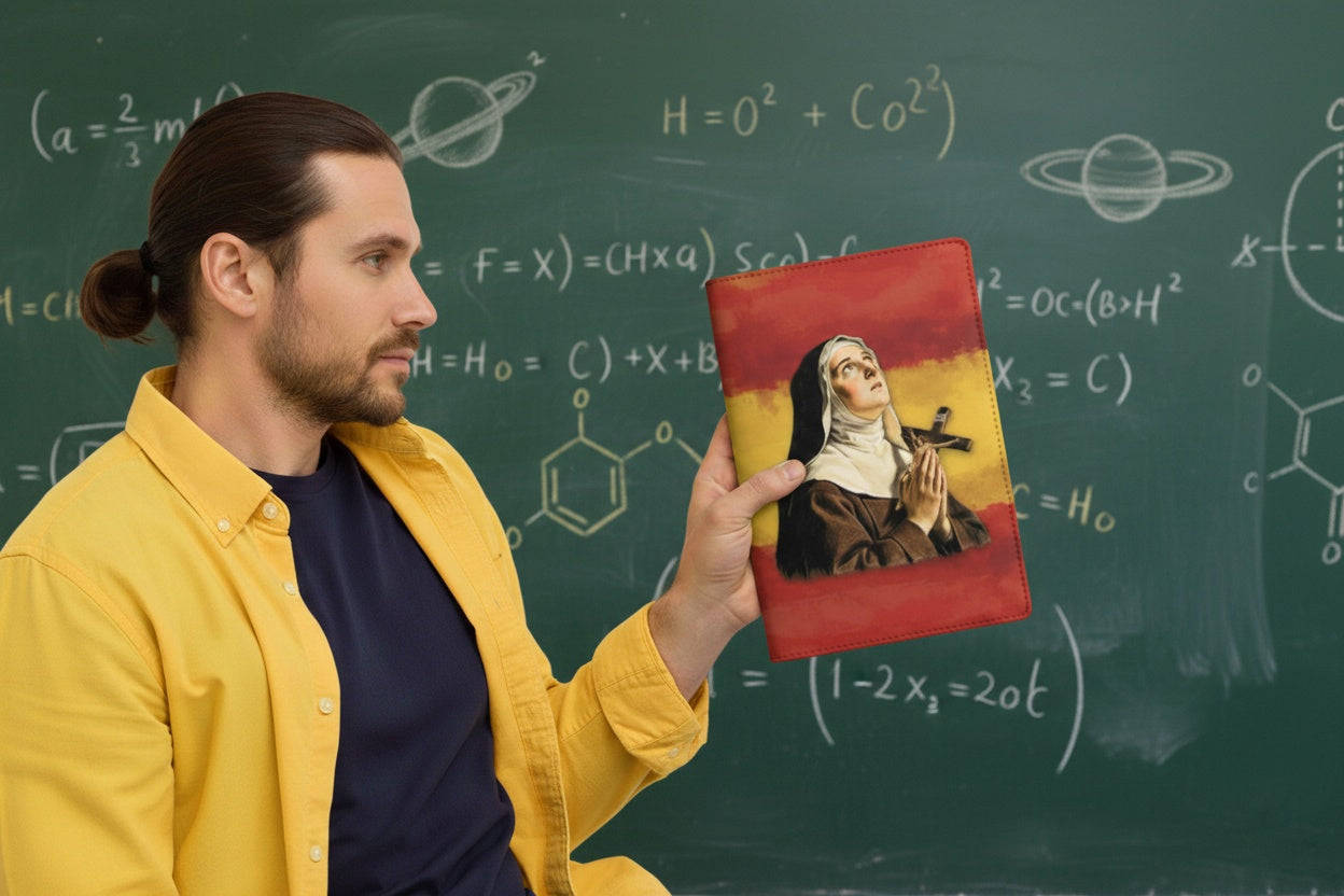 Esta cubierta evoca la unión indisoluble entre la herencia católica y el orgullo patrio, inspirada en obras clásicas como El Castillo Interior y Camino de Perfección, donde Teresa guía al alma hacia la unión con Dios a través de la oración mental y la humildad.
